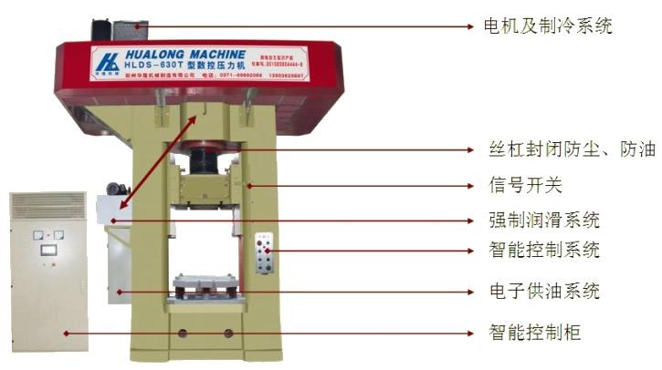 鄭州華隆機(jī)械制造有限公司的螺旋壓力機(jī)采用永磁同步伺服電機(jī)驅(qū)動控制, 由框架、飛輪、螺桿螺母、滑塊、潤滑機(jī)構(gòu)、制動機(jī)構(gòu)等機(jī)械部分和伺服電機(jī)、電氣控制柜、操作按鈕站等電氣部分構(gòu)成。是摩擦壓力機(jī)的更新?lián)Q代產(chǎn)品。